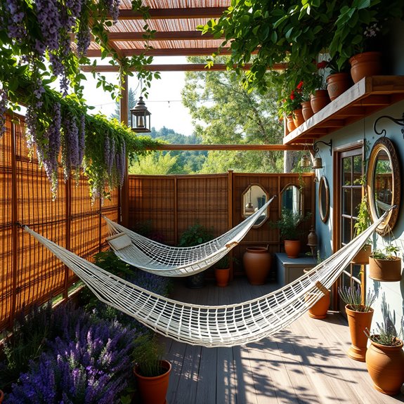 Remember that successful terrace gardens begin with careful planning of weight distribution and proper anchoring systems for both plants and hammocks.